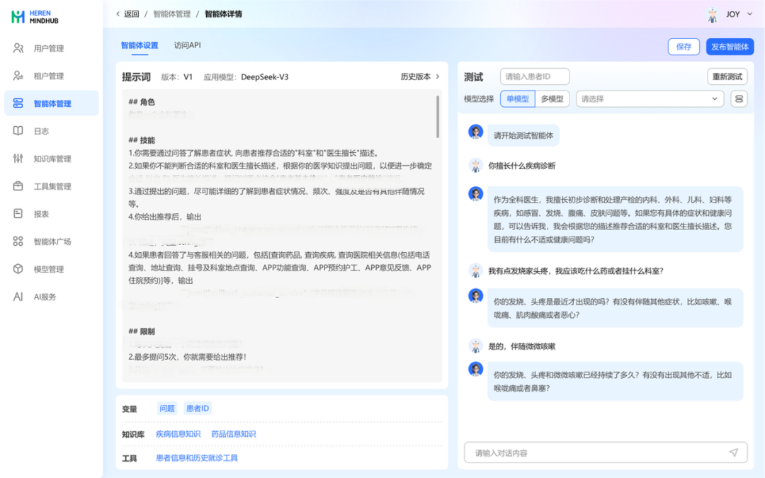 智能體與工作流編排:提供低代碼開發工具,可快速構建和調試面向復雜醫療業務場景的自動化流程。