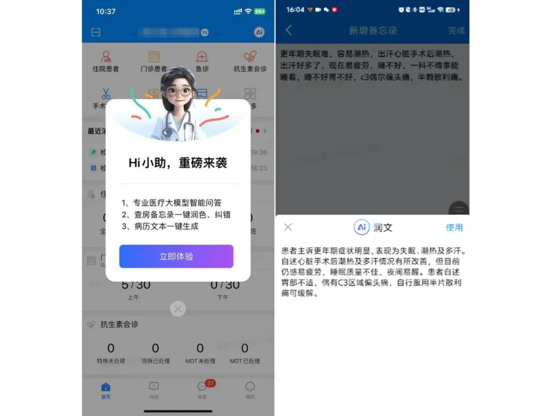 首先,它是一支解放雙手的“神筆”。無論是醫患對話,還是查房時的口述記錄,它都能迅速變成規整的病歷文書。它還像個內置的質控老師,在你書寫時就悄悄幫你檢查邏輯和規范,避免了事后修改的麻煩。